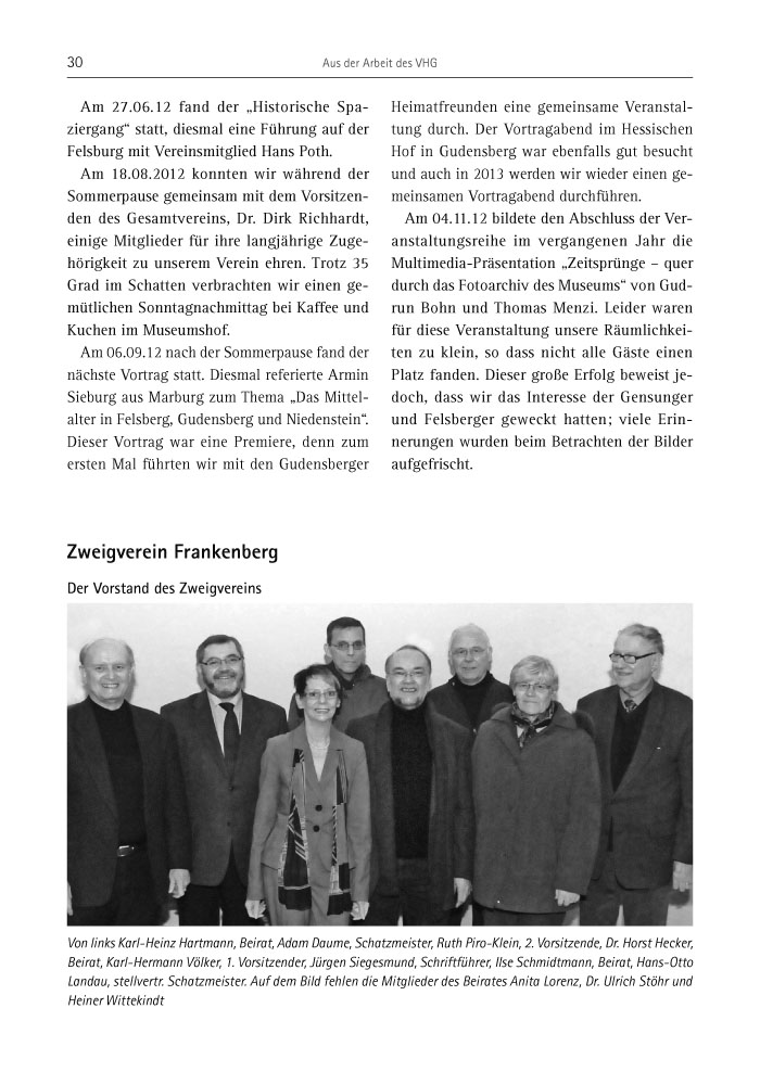 Von links Karl-Heinz Hartmann, Beirat, Adam Daume, Schatzmeister, Ruth Piro-Klein, 2. Vorsitzende, Dr. Horst Hecker, Beirat, Karl-Hermann Völker, 1. Vorsitzender, Jürgen Siegesmund, Schriftführer, Ilse Schmidtmann, Beirat, Hans-Otto Landau, stellvertr. Schatzmeister. Auf dem Bild fehlen die Mitglieder des Beirates Anita Lorenz, Dr. Ulrich Stöhr und Heiner Wittekindt