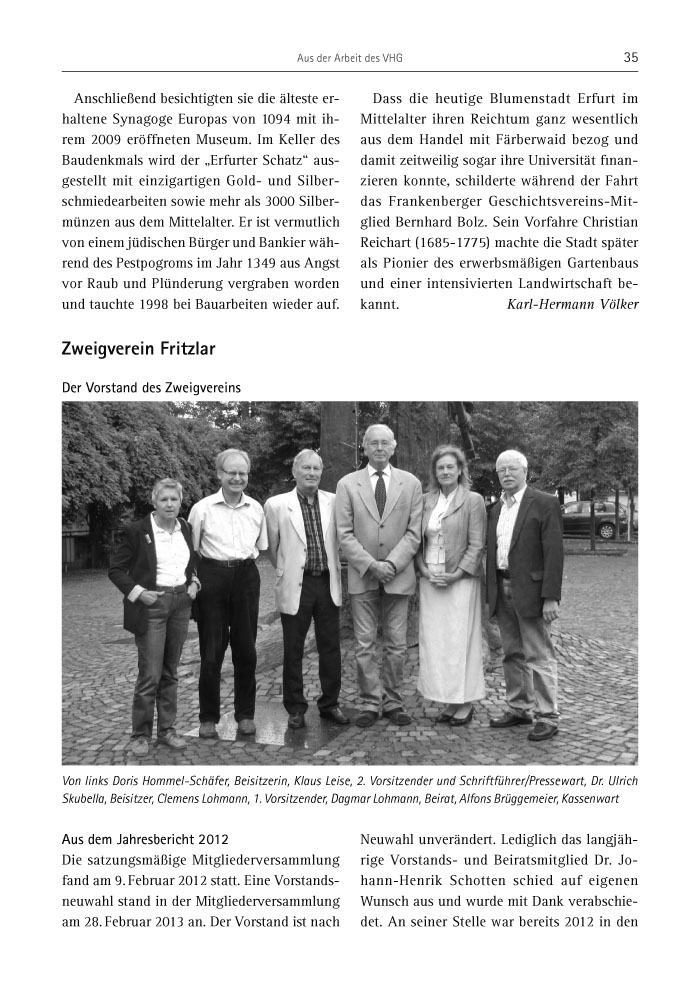Die satzungsmäßige Mitgliederversammlung fand am 9. Februar 2012 statt. Eine Vorstandsneuwahl stand in der Mitgliederversammlung am 28. Februar 2013 an. Der Vorstand ist nach Neuwahl unverändert. Lediglich das langjährige Vorstands- und Beiratsmitglied Dr. Johann-Henrik Schotten schied auf eigenen Wunsch aus und wurde mit Dank verabschiedet. An seiner Stelle war bereits 2012 in den