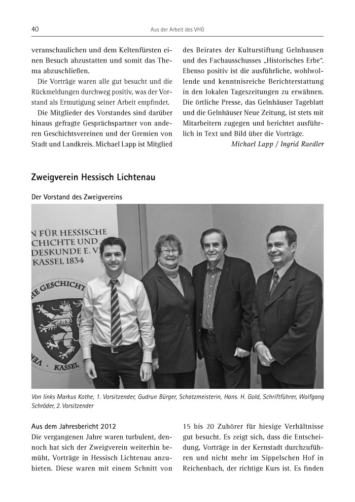 Die vergangenen Jahre waren turbulent, dennoch hat sich der Zweigverein weiterhin bemüht, Vorträge in Hessisch Lichtenau anzubieten. Diese waren mit einem Schnitt von 15 bis 20 Zuhörer für hiesige Verhältnisse gut besucht. Es zeigt sich, dass die Entscheidung, Vorträge in der Kernstadt durchzuführen und nicht mehr im Sippelschen Hof in Reichenbach, der richtige Kurs ist. Es finden