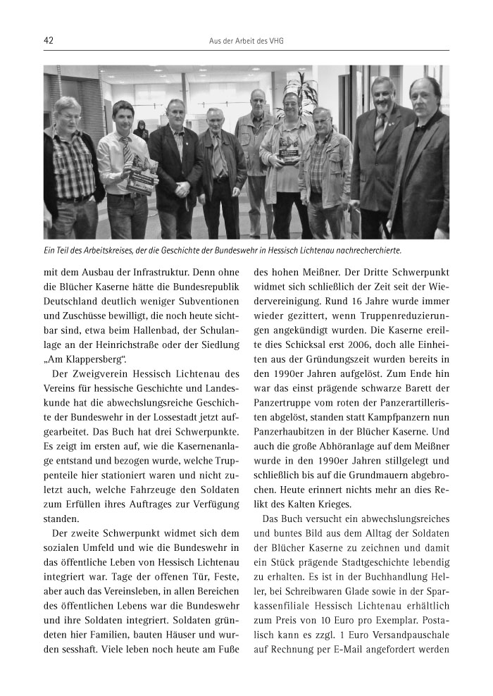 Der Zweigverein Hessisch Lichtenau des Vereins für hessische Geschichte und Landeskunde hat die abwechslungsreiche Geschichte der Bundeswehr in der Lossestadt jetzt aufgearbeitet. Das Buch hat drei Schwerpunkte. Es zeigt im ersten auf, wie die Kasernenanlage entstand und bezogen wurde, welche Truppenteile hier stationiert waren und nicht zuletzt auch, welche Fahrzeuge den Soldaten zum Erfüllen ihres Auftrages zur Verfügung standen.