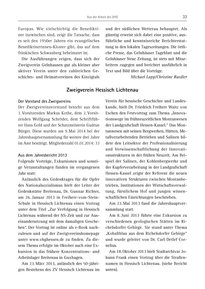 Aus der Arbeit des VHG 33