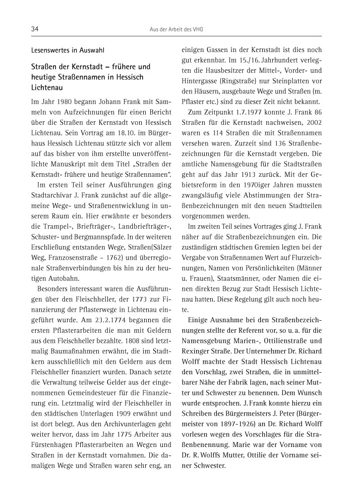 34 Aus der Arbeit des VHG
