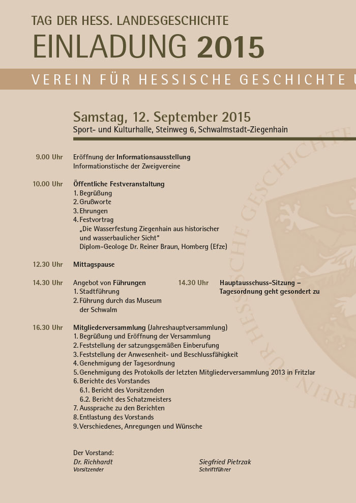 V E R E I N F Ü R H E S S I S C H E G E S C H I C H T E U EINLADUNG 2015