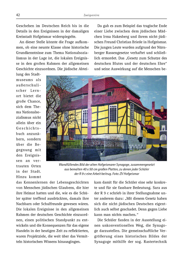 Wandfüllendes Bild der alten Hofgeismarer Synagoge, zusammengesetzt