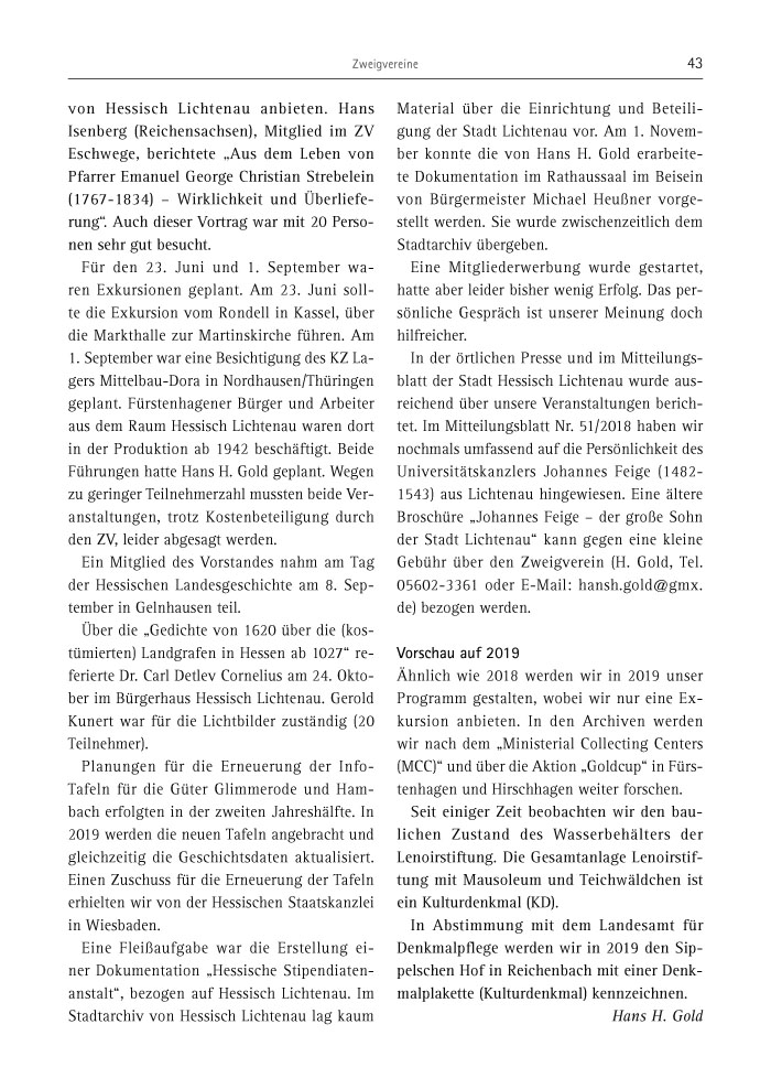Gebühr über den Zweigverein (H. Gold, Tel.