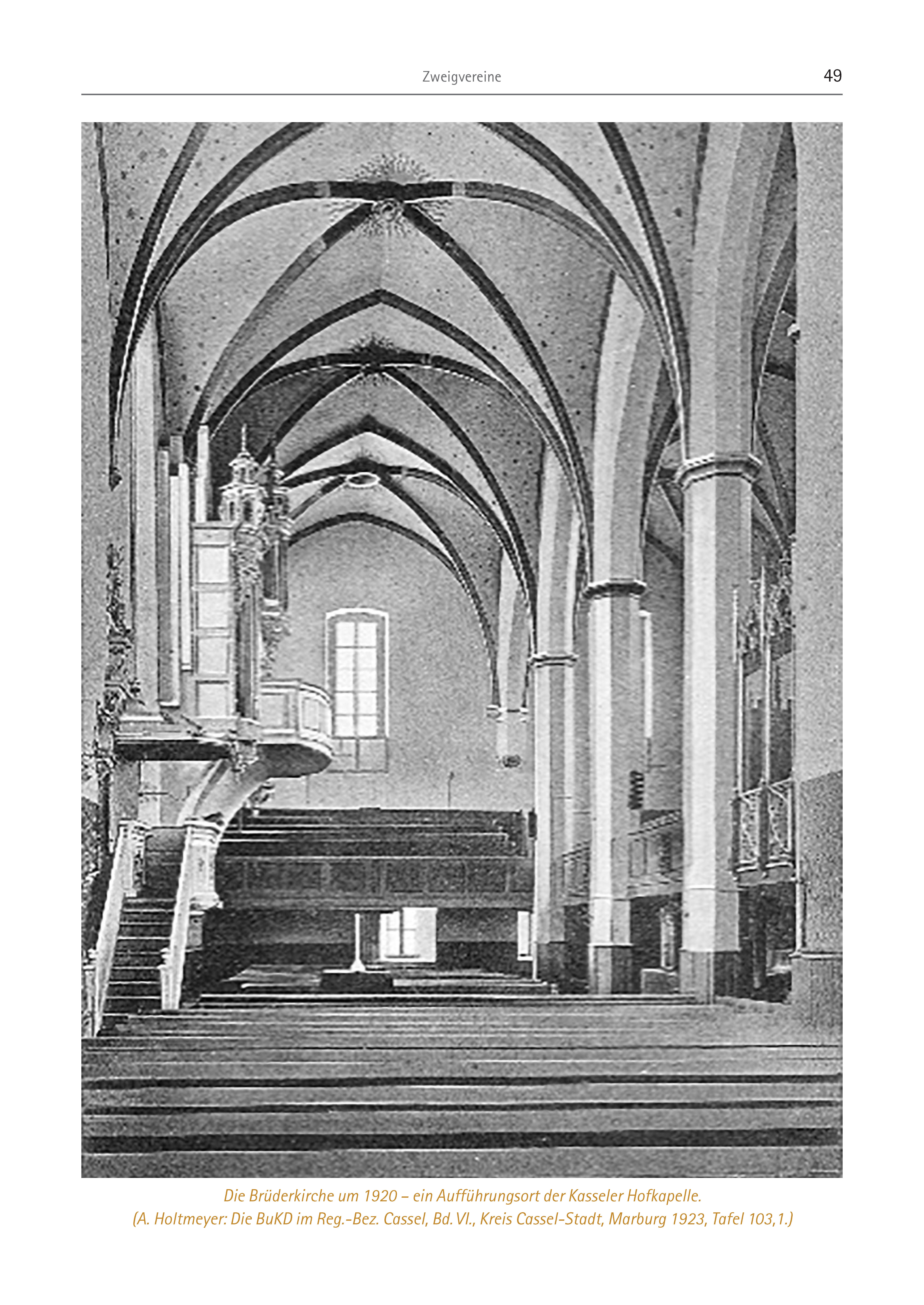Zweigvereine 49 Die Brüderkirche um 1920 – ein Aufführungsort der Kasseler Hofkapelle. (A. Holtmeyer: Die BuKD im Reg.-Bez. Cassel, Bd. VI., Kreis Cassel-Stadt, Marburg 1923, Tafel 103,1.)
