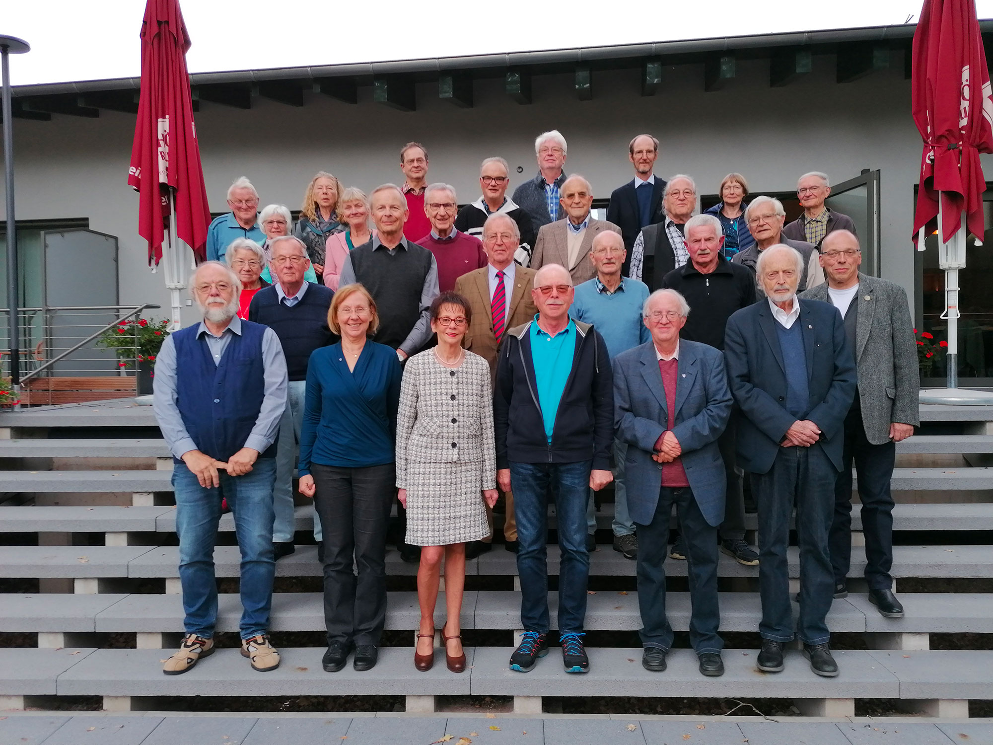 | Gruppenfoto aller Anwesenden mit dem alten und neuen Vorstand in der ersten Reihe; v.o.l.n.u.r.: Hans Sterzinger, Gloria Meyer, Wilhelm Busch, Alexander Wimmel, Hans Liese, Dr. Martin Arnold, Helga und Hans Isenberg, Beate Westphal, Lemmel-Busch, Dieter Oehler, Oskar Sint, Bastian Gnielka und Karl Möller, Margot Moebis, Dr. Guse, Ulrich Zander, Otto von Boyneburgk, Otto Steinmetz, Gert Landgrebe und Andreas Loehnert, Manfred Heide, Heike Spenner, Ruth Piro-Klein, York-Egbert König, Karl Kollmann, Helmut Gerlach; Frau Sint, das Ehepaar Schäfers (mit Hund) und Sigrid Rockel sowie die Begleitung von Andreas Loehnert fehlen |