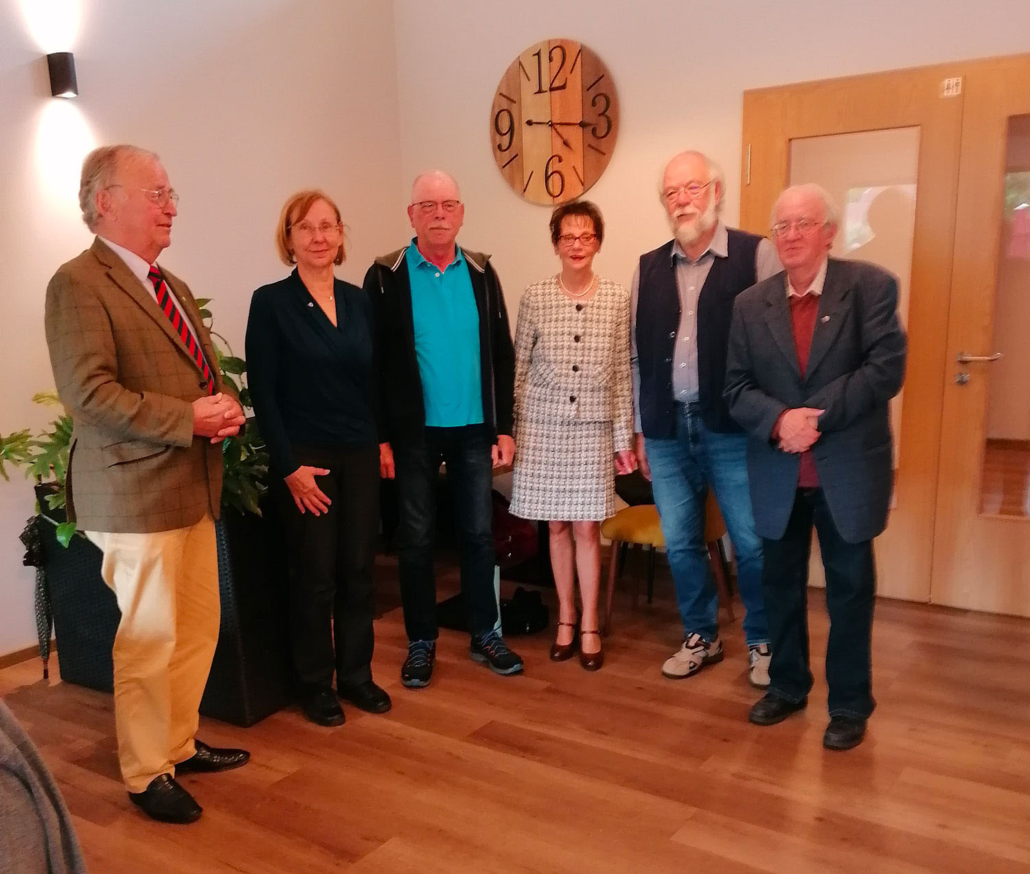 | Gruppenfoto des neuen Vorstands mit Wahlvorstand Von links: Wahlvorstand Otto von Boyneburg, Heike Spenner (Schatzmeisterin), York-Egbert König (Schriftführer), Ruth Piro-Klein (stellv. Vorsitzende des Hauptvereins), Manfred Heide (stellv. Vorsitzender) und Dr. Karl Kollmann (Vorsitzender) |