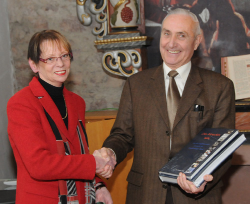 | Mit Buchgeschenken bedankte sich Ruth Piro-Klein bei Dr. Peter Witzel für seinen Vortrag. |