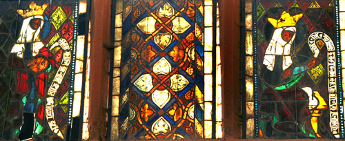 Vermutlich drei Künstler hätten diese Fenster geschaffen, sagte Dr. Witzel, Kunsthistoriker orientierten sich dabei an den aufgemalten Augenformen. Vier weitere Motive sind: