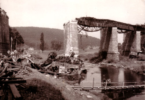 te es der Zugteil nicht über die Weichen schaffen. Die Waggons entgleisten und stürzten über den Rand der Kanonenbahn-Brücke. Die Gewalt riss den ersten Brückenbogen mit sich. Es sei großes Glück gewesen, dass der Zug nicht, wie in Kriegsjahren üblich, mit Waffen und Munition beladen gewesen sei, sondern vorwiegend mit Kleidung, Zellwolle und Schuhen, meint Mihm, der mitbekam, wie meterhohe Flammen von der Unglücksstelle aufstiegen und den Himmel über Malsfeld in der Nacht erleuchteten. „Durch die Hitze des Feuers", erklärt der Zeitzeuge, „sind damals die Sandsteine am Brückenpfeiler abgeplatzt, was man heute noch sieht." |