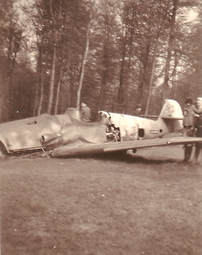 Die Amerikaner und Engländer hatten ja schon seit langem die absolute Lufthoheit. Und so konnten wir einen Luftkampf mit ansehen. Ein deutsches Jagdflugzeug – Me 109 – hatte sich gleichwohl in die Luft gewagt und war sofort von anglo-amerikanischen Flugzeugen angegriffen worden. Der deutsche Pilot vollbrachte noch eine Notlandung auf einer Wiese im Dörnbach und flüchtete aus der Maschine in den nahen Wald, was ihm auch gelang, obwohl er von den feindlichen Flugzeugen noch mit Bordwaffen beschossen wurde. |