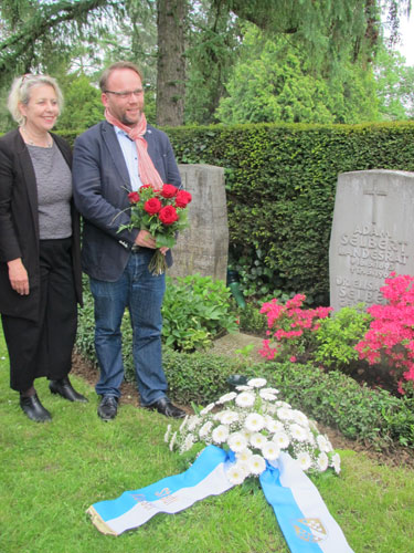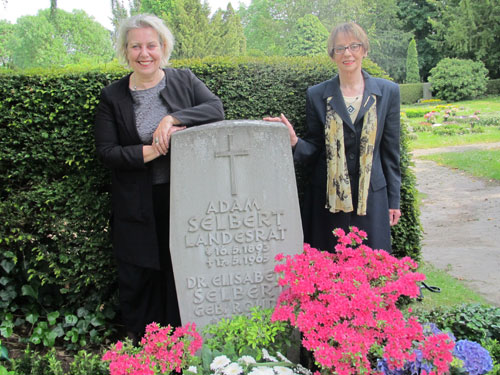 Susanne Selbert und die stellvertretende Vorsitzende des Vereins für hessische Geschichte und Landeskunde Ruth Piro-Klein am Grab von Elisabeth und Adam Selbert