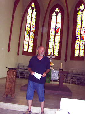 Stadtführer und Vorstandsmitglied des Geschichtsvereins Melsungen bei seiner Erklärung in der Stadtkirche Melsungen.