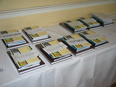 Rechts: Bücherpakete mit den neuesten Vereinspublikationen für die Bibliotheken der Zweigvereine.
