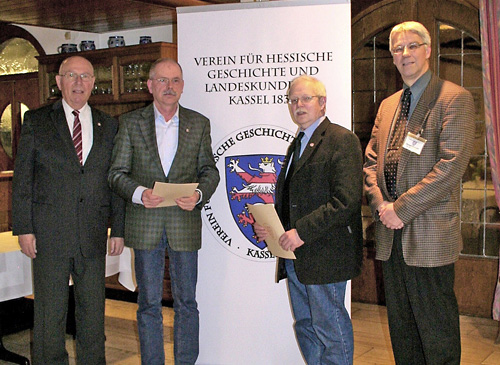 Herr Alfons Brüggemeier vom Zweigverein Fritzlar erhalten. v.l.n.r. Siegfried Pietrzak, York Egbert König, Alfons Brüggemeier und Dr. Dirk Richhardt. (Fotos: Siegfried Pietrzak) |