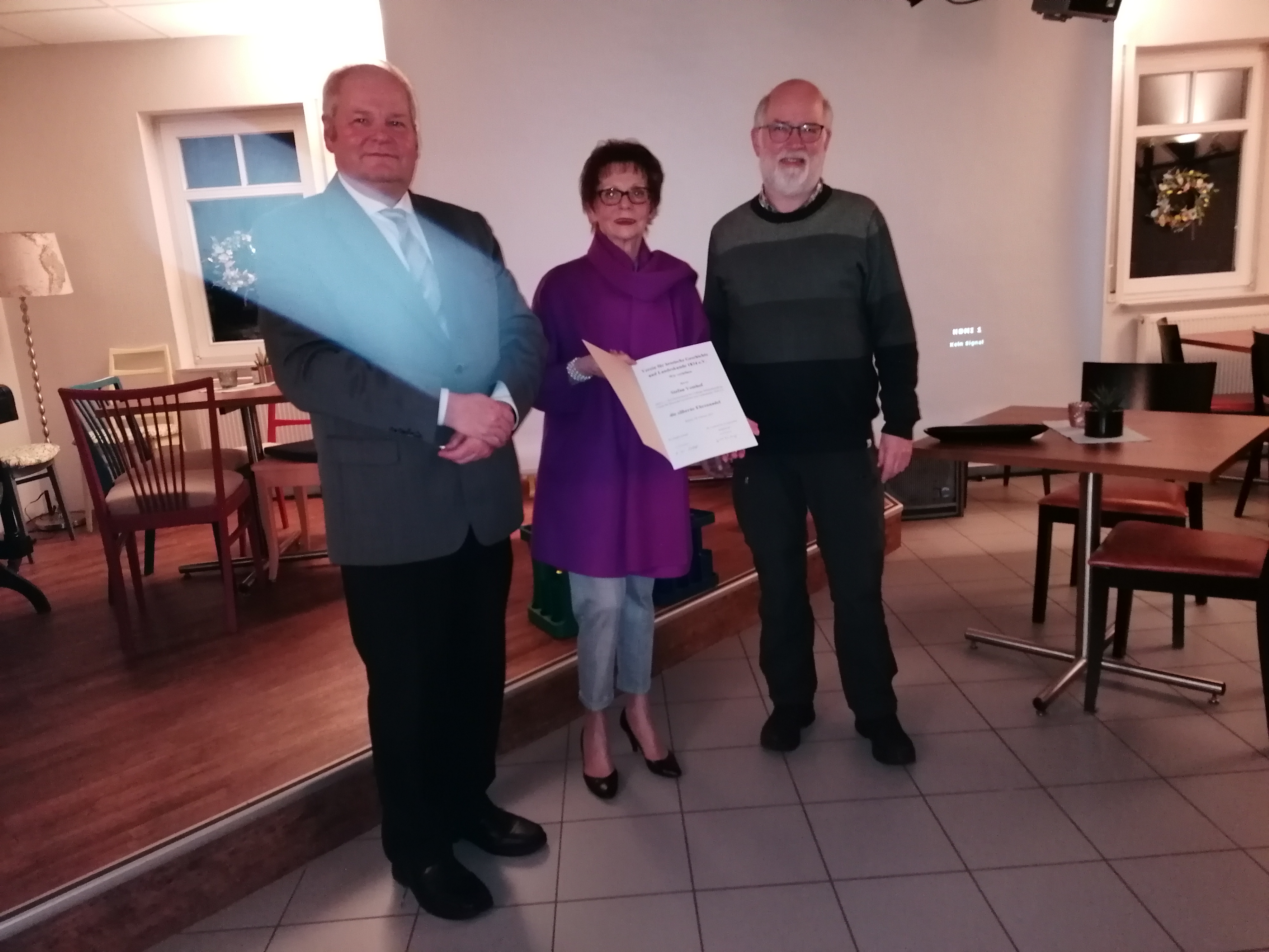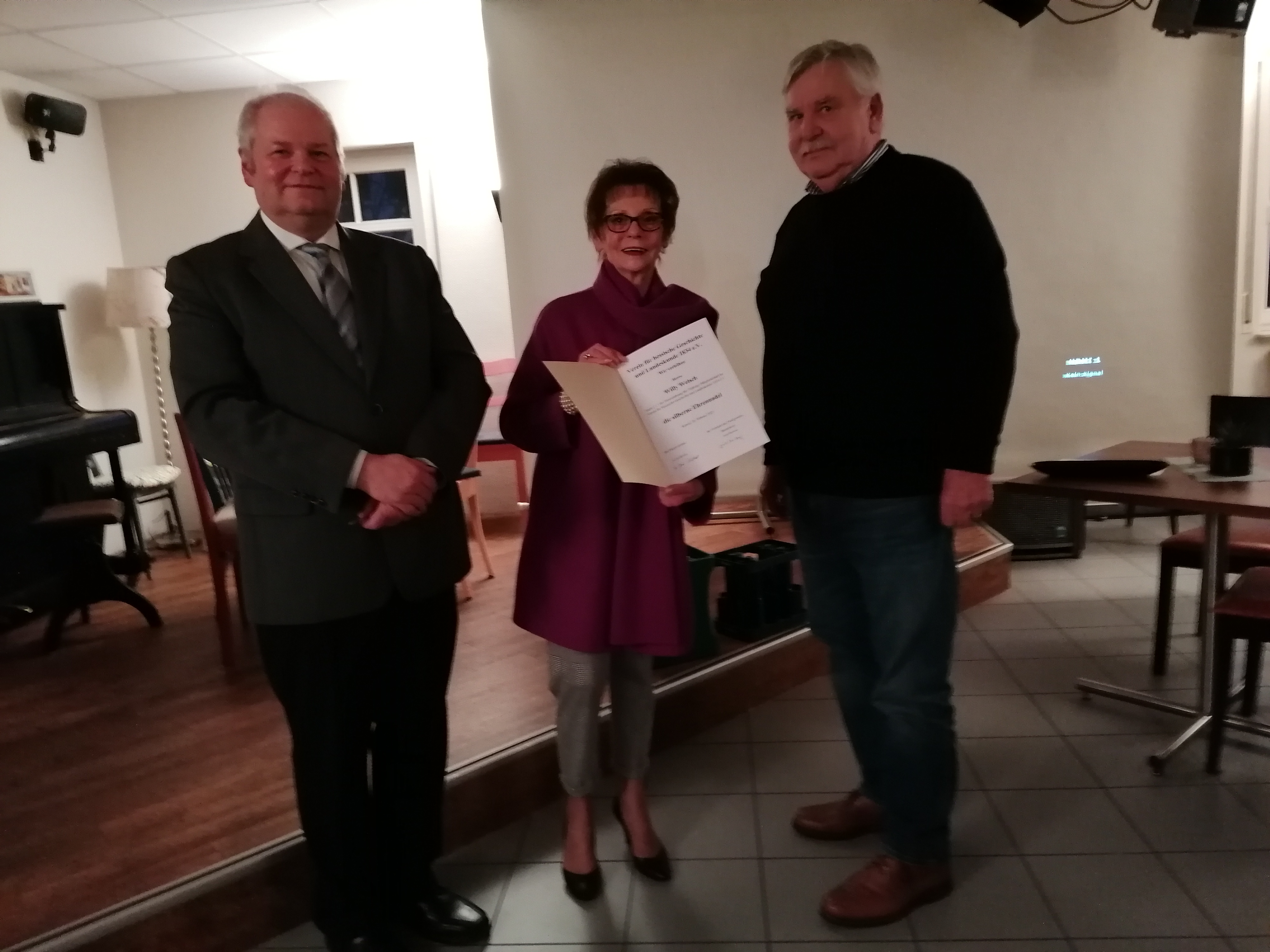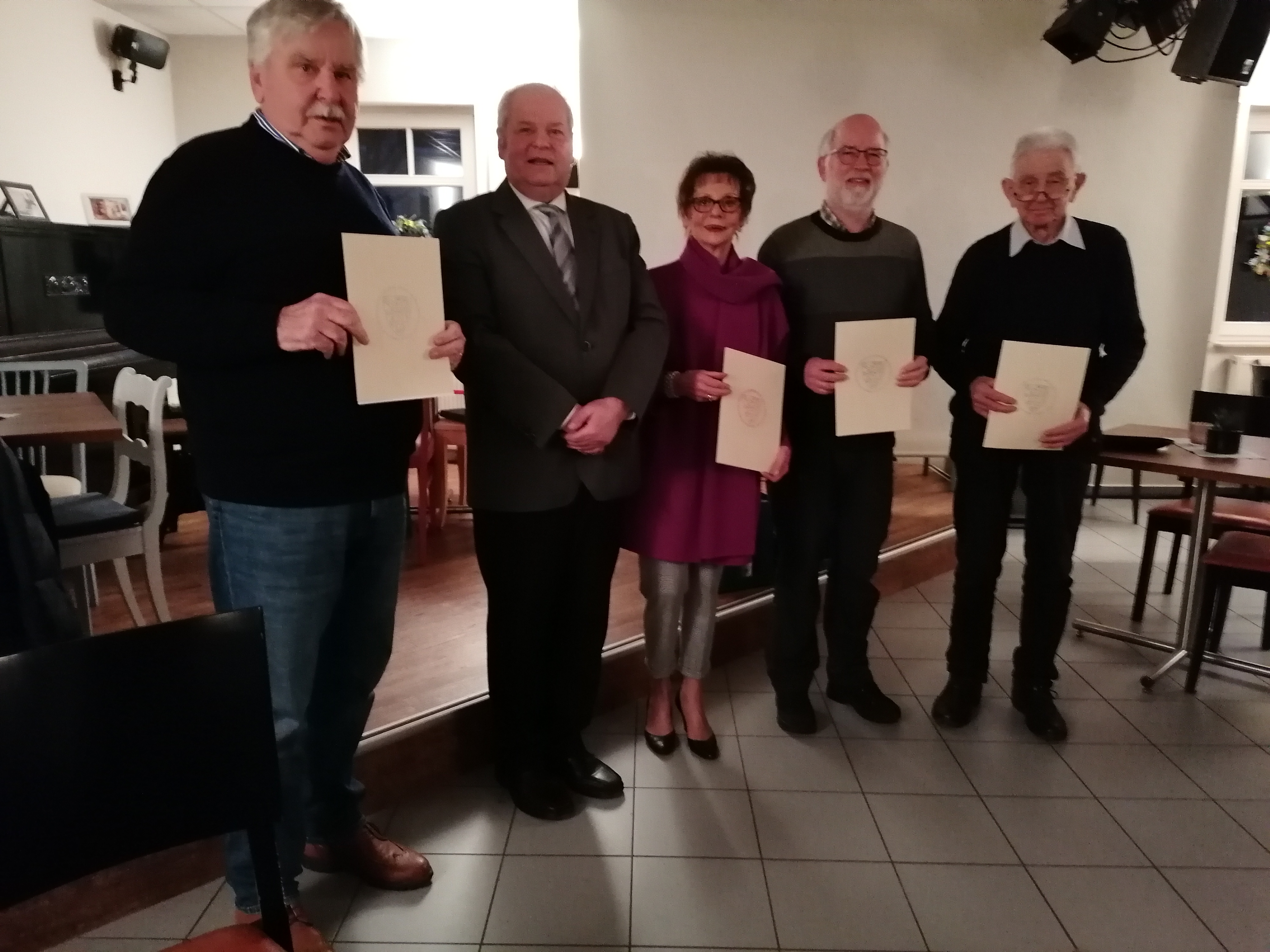 | Auf der Jahreshauptversammlung wurden von Ruth Piro-Klein (Mitte), stellvertretende Vorsitzende des VHG, die folgenden Mitglieder des ZV Biedenkopf geehrt (unten rechts, v.l.n.r.): Willy Welsch, Gerald Bamberger, Stefan Vomhof und Ludwig Herrmann |