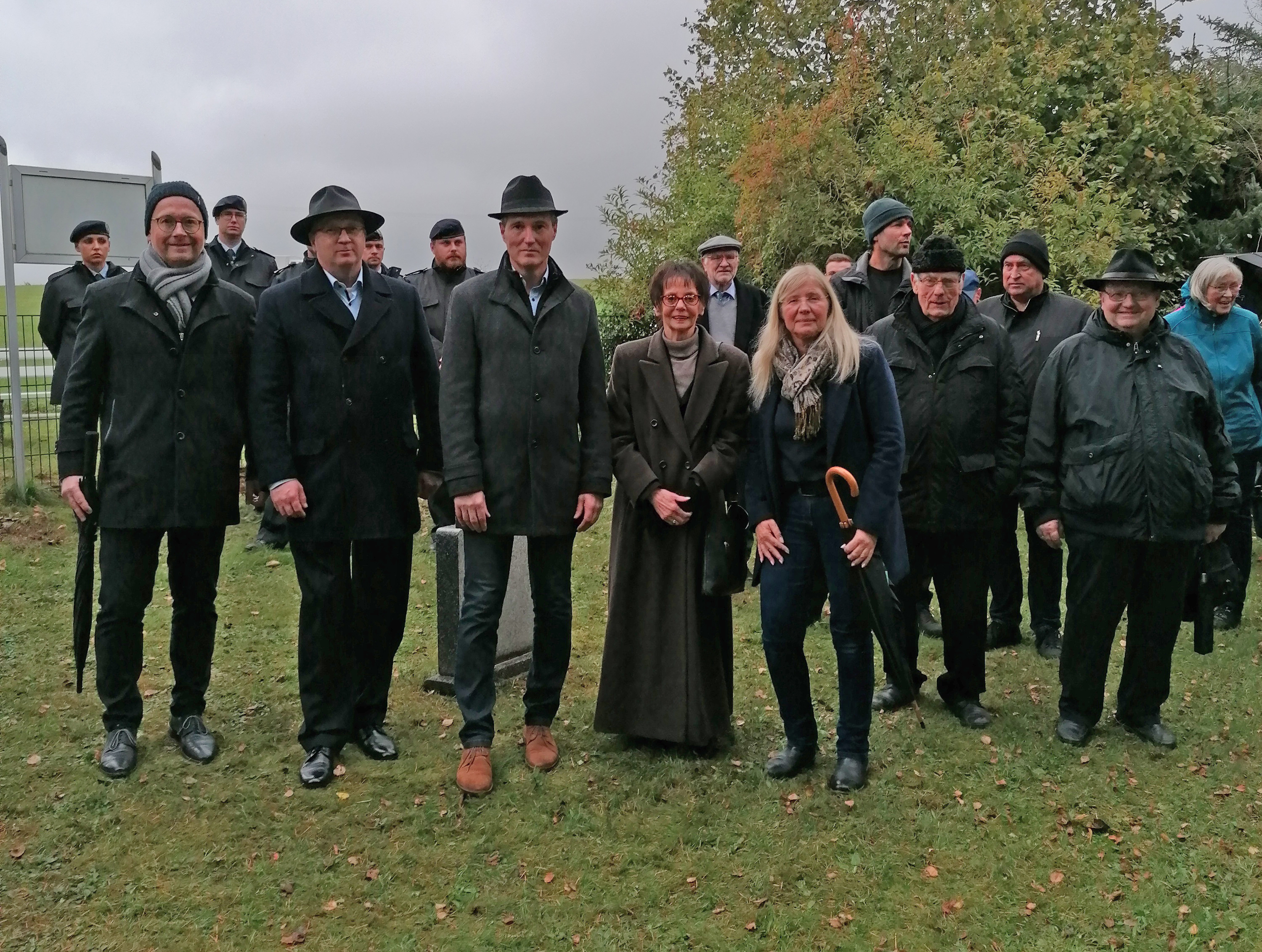 Vordere Reihe: Bürgermeister Karsten Kalhöfer von Vöhl, Bürgermeister Ralf Gutheil von Bad Wildungen, Landrat Jürgen van der Horst, Ruth Piro-Klein und Marion Lilienthal vom Verein Synagoge Vöhl |