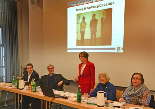 Der Vorstand des VHG in Person der stellvertretenden Vorsitzenden Ruth Piro-Klein (stehend) berichtet über die Arbeit des Vereins