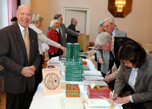 Andrang an den Büchertischen: Dr. Wolfgang Fischer (linkes Bild) bot die Neuerscheinungen des Waldeckischen Geschichtsvereins