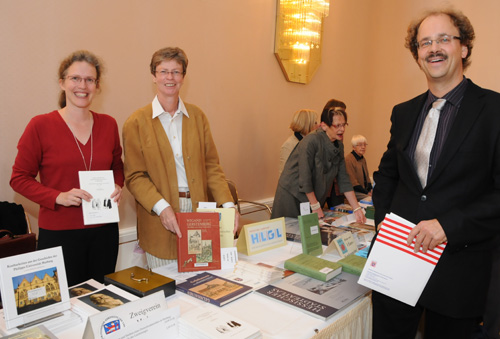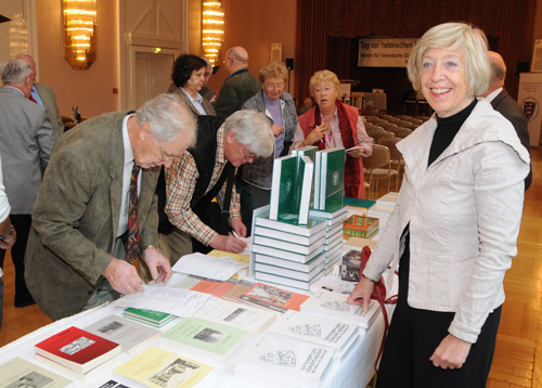 im Tagungssaal des Maritim-Hotels an. Sabine Köttelwesch (rechtes Bild) betreute den Büchertisch des Gesamtvereins. (Bilder: Karl-Hermann Völker) |