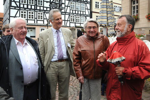 | Hessen und Waldeck als Nachbarn: Gemeinsam hielten beim Tag der hessischen Landesgeschichte 2010 in Bad Wildungen von links Karl-Hermann Wegner, Bürgermeister Volker Zimmermann, Dr. Wolfgang Fischer, Festredner Dr. Karl Murk und Siegfried Pietrzak Rückschau. |