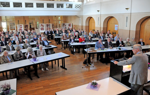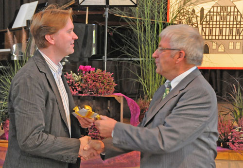 Der Vorstand des Zweigvereins Homberg/Efze Harald Götte begrüßt Festredner Dr. Jan Martin Lies
