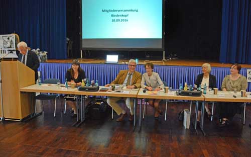 Dr. Dirk Richhardt stellt auf der Mitgliederversammlung am Nachmittag die neue Schriftführerin Sabine Köttelwesch vor