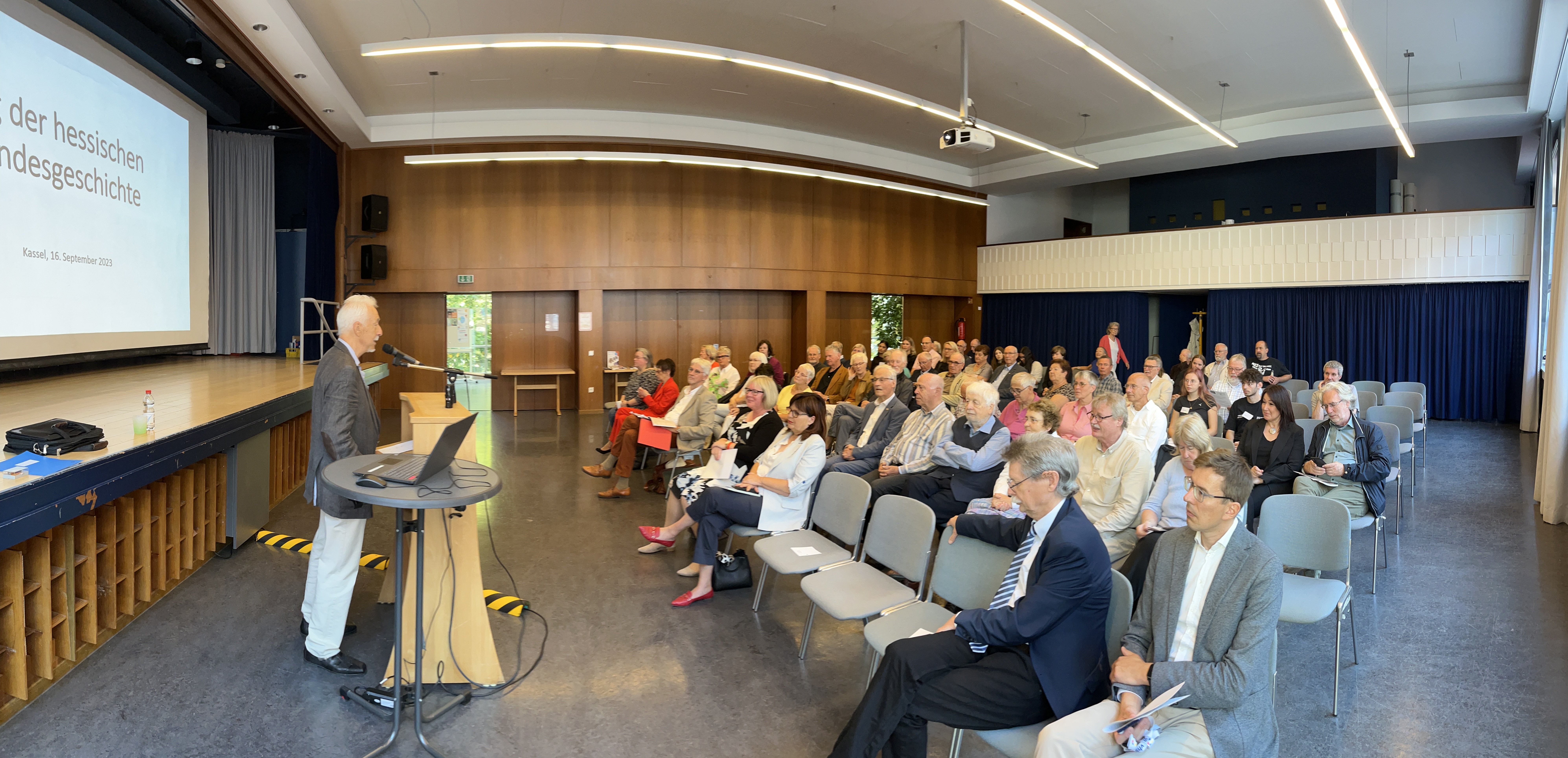 | Besucherinnen und Besucher des Tags der hessischen Landesgeschichte im Saal der Volkshochule Region Kassel |