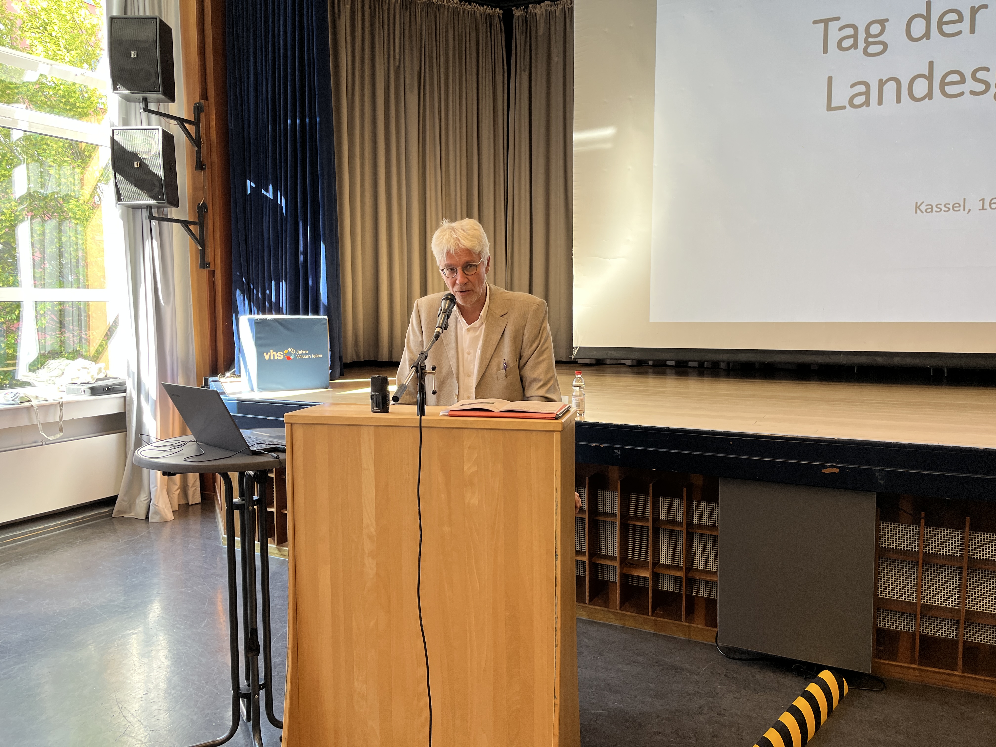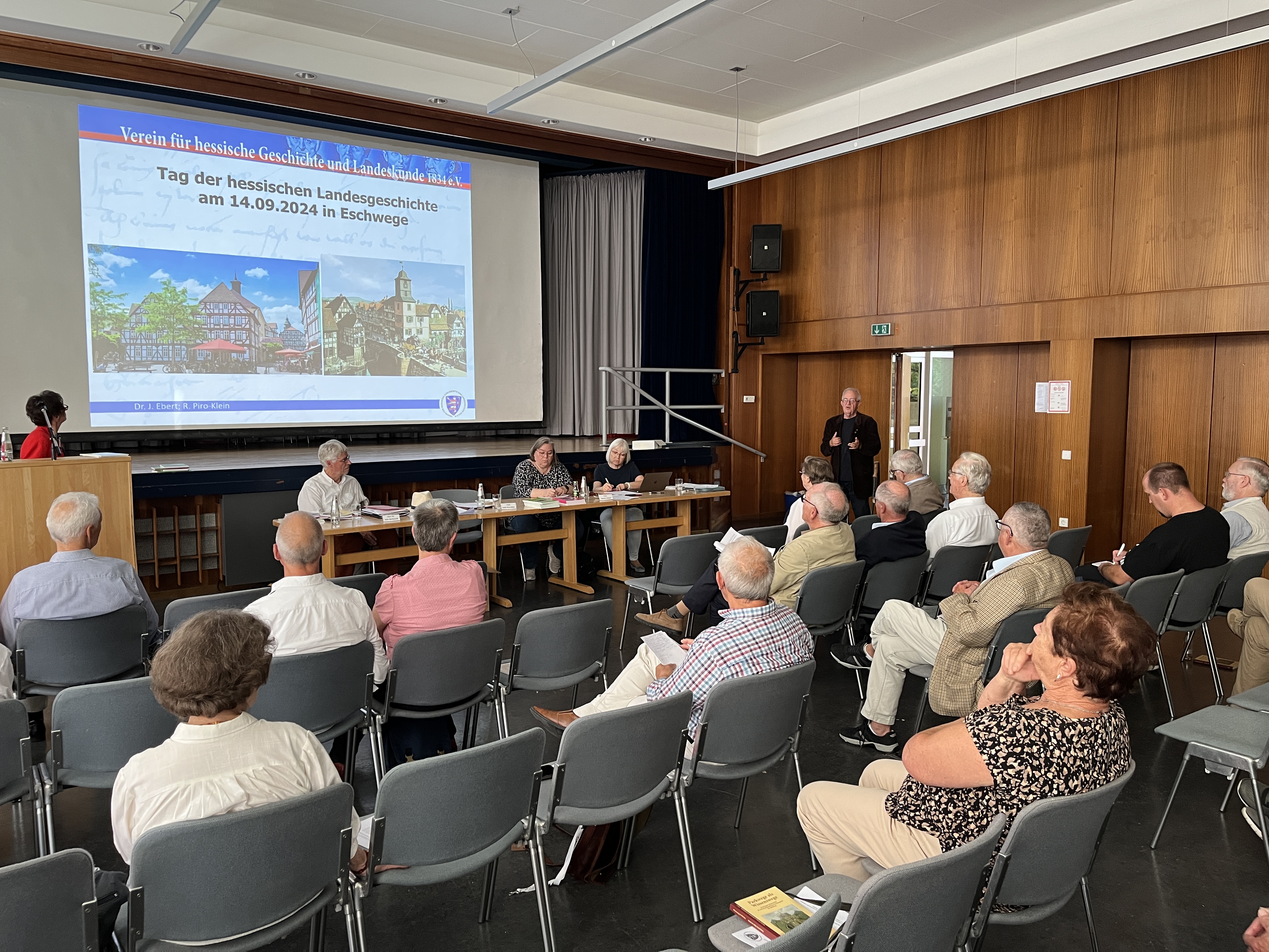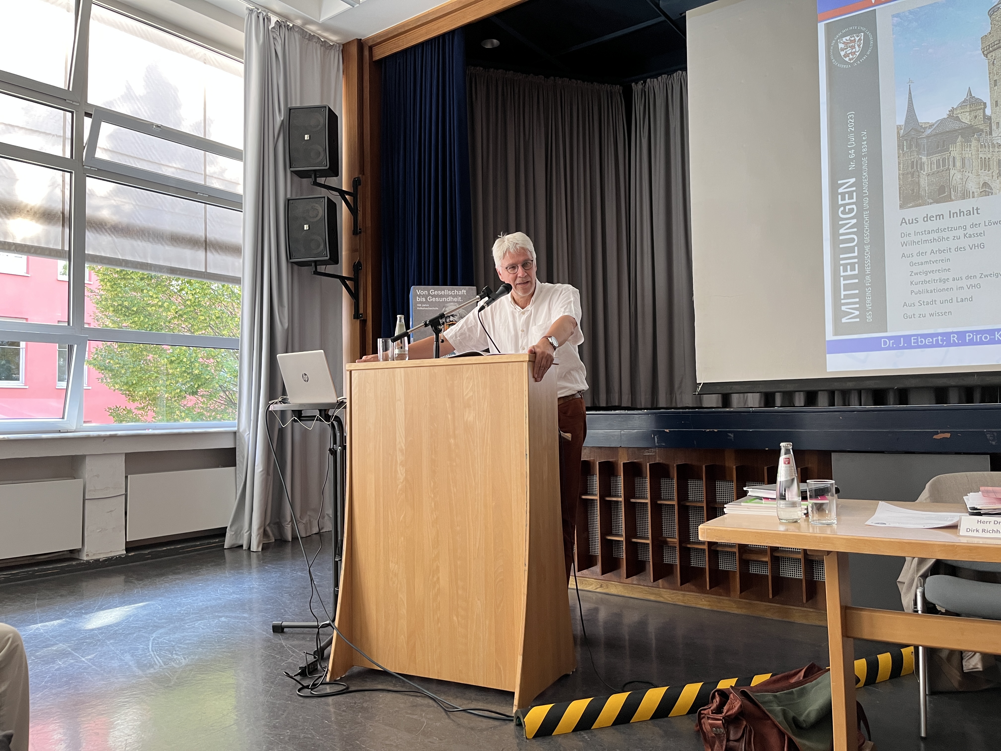 | Begrüßung der Gäste durch Jürgen Fischer, Vorsitzender des Zweigvereins Kassel im Verein für hessische Geschichte und Landeskunde |