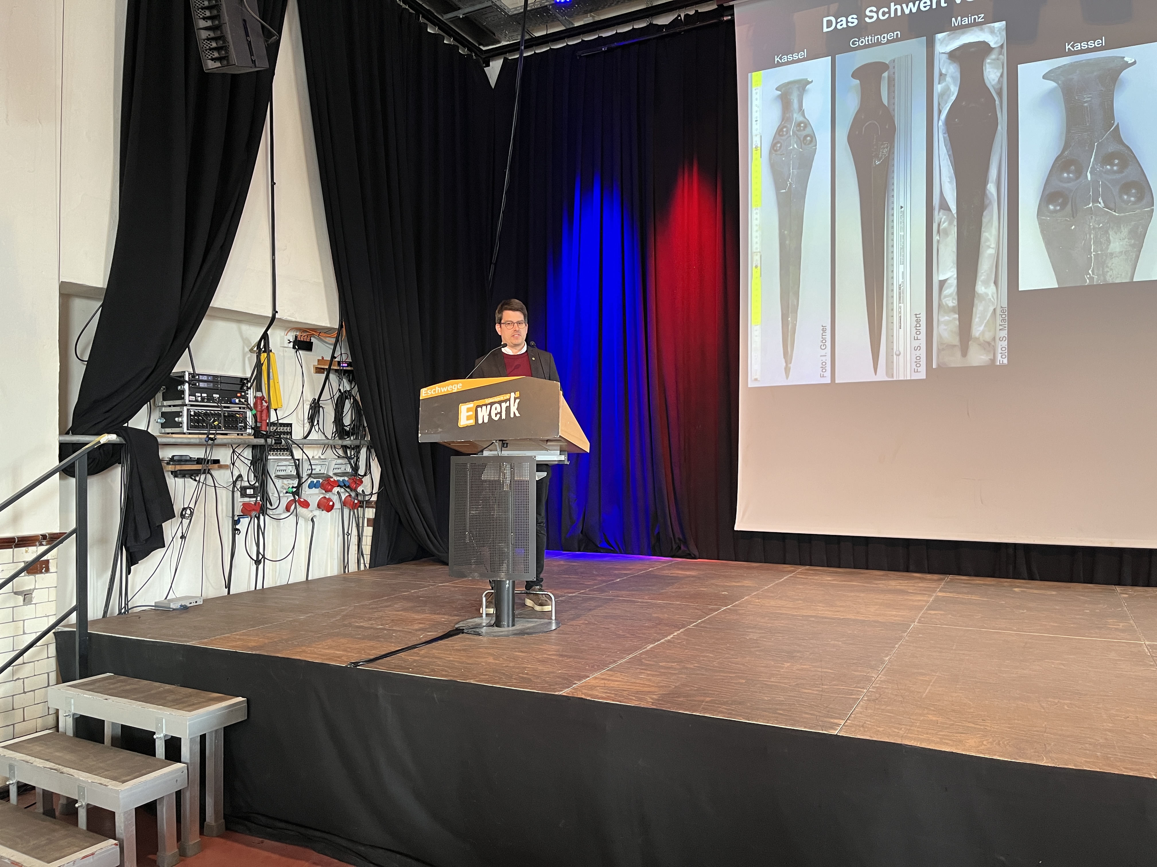 | Stefan Forbert führt in das Thema des Festvortrags ein und stellt den Festredner, Dr. Jan-Heinrich Bunnefeld, vor, der über das "Schwert von Eschwege im Kontext der Früh- und beginnenden Mittelbronzezeit in Mitteldeutschland und Nordhessen" vorgetragen hat |
