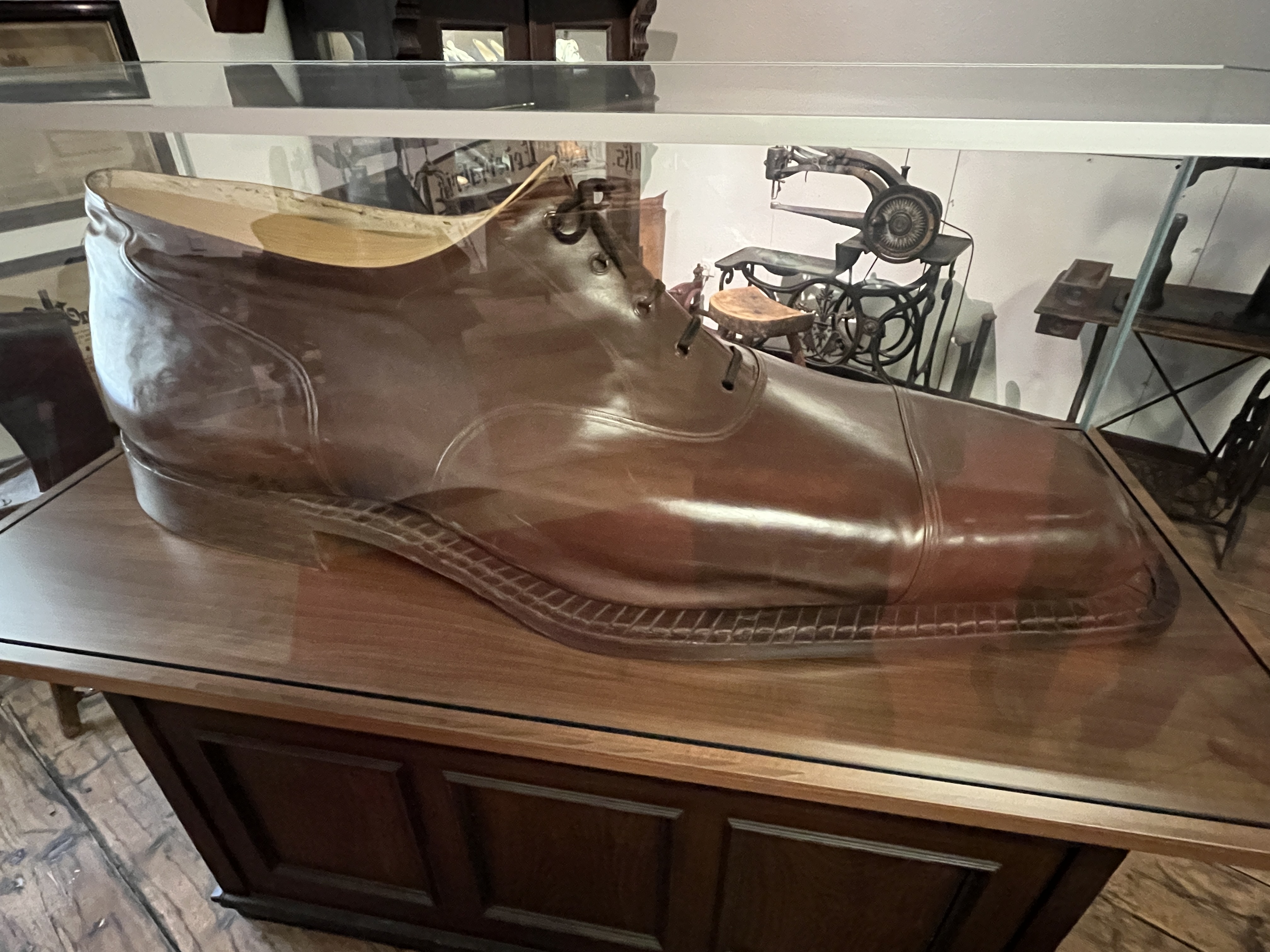 eines der sehenswerten Exponate des Stadtmuseums Eschwege: mit Schuhgröße 219 der größte Schuh Hessens (unten rechts) |