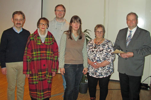 Im Rahmen der Jahreshauptversammlung des Zweigvereins Biedenkopf am 24. Januar 2020 wurden folgende Mitglieder durch die stellvertretende Vorsitzende des Hauptvereins, Ruth Piro-Klein, für ihre 25jährige Mitgliedschaft geehrt: Hans Axt, Hilde Christmann, Dr. Kerstin Werner und Bernd Plack. Drei Mitglieder konnten die Ehrung nicht persönlich entgegen nehmen. Die Urkunden und Nadeln wurden dem Vorsitzenden des Zweigvereins Biedenkopf, Gerald Bamberger, überreicht. Im Anschluss wurde in einer Nachwahl Frau Christa Happel zur Schatzmeisterin gewählt, da die Vorgängerin, Frau Westmeier verstorben ist. |