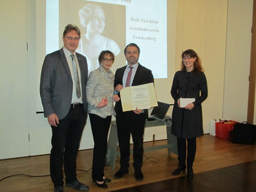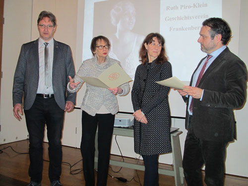 Am 21.01.2020 hielt der Zweigverein Gelnhausen seine Jahreshauptversammung im Romanischen Haus in Gelnhausen ab. Vom Hauptvorstand des Vereins für hessische Geschichte und Landeskunde nahm die stellvertretende Vorsitzende Frau Ruth Piro-Klein an der Jahreshauptversammlung teil und ehrte den Kreisausschuss des Main Kinzig Kreises und den Magistrat der Stadt Gelnhausen für ihre langjährige Mitgliedschaft mit der goldenen Urkunde geehrt. Beide Gremien sind seit 1926 Mitglied. Für die Stadt hat Bürgermeister Daniel Christian Glöckner die Urkunde entgegen genommen, für den Landkreis im Auftrag von Landrat Thorsten Stolz Frau Christine Raedler. Im Anschluss an die Jahreshauptversammung ielt Frau Ruth Piro-Klein einen Vortrag „Zur Geschichte der Unterwäsche“ für die Mitglieder und Gäste. |