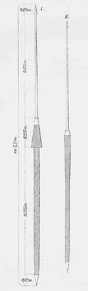 N° I das Schwere, N° II das leichte römische Pilum