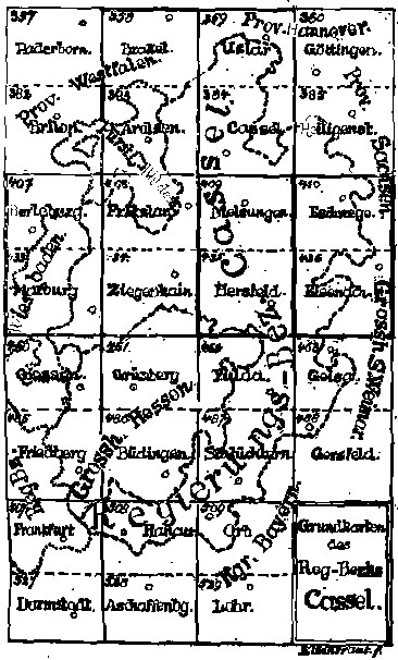 [Übersichtskarte über die Grundkarten des Regierungsbezirks Cassel]