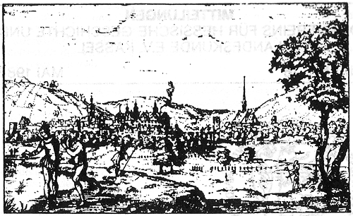 Rotenburg von Südosten Federzeichnung von Wilhelm Dilich „Ansichten hessischer Städte" 1591, Tafel 16 (von links Rotenburger Altstadt mit Stadtmauer nicht mehr vorhandenem Turm, Hexenturm, Oberntor, Schloß mit Ummauerung, hölzerne Brücke zur Neustadt, Steinernes Haus, Stiftskirche Alte Landvogtei (?), Weinberge und Weinberghäuschen. Vordergrund links See auf Gelände der jetzigen Verwaltungsfachhochschule).