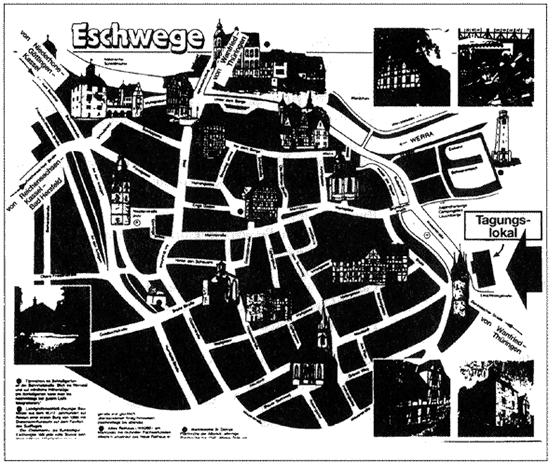 Sonstige Hinweise: Anschrift der Tagungsstätte: Stadthalle, Wiesenstr. /Leuchtberg, Eschwege; * Teilnahme am kalten Buffett DM 20,- ** Anträge – vgl. MHG Nr. 25, August 1992- *** Speisenauswahl - Rahmhack DM 11,- - Schweinebraten DM 13,50 - Schnitzel DM 15,80 - Änderung vorbehalten - Aus organisatorischen Gründen wird gebeten, die Essensmarken rechzeitig zu erwerben.