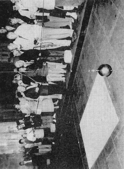 Dombaumeister Prof. Arnold Wolff führte den Frankenberger Gästen persönlich den Foucaultschen Pendelversuch, mit dem 1852 der Frankenberger Naturwissenschaftler Garthe im hohen Chor der Kirche großes Aufsehen erregt hatte, vor. Kugel und Skalenbrett waren wie zu Garthes Zeit nachgebaut worden. (Fote Völker)