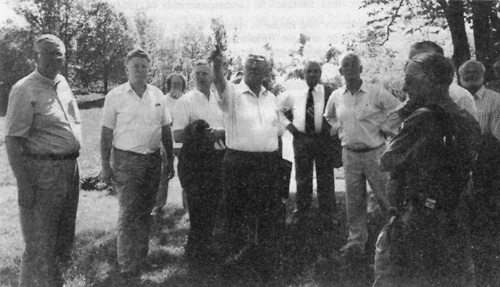Herr Herwig, Altbürgermeister der Stadt Gensungen, erläuterte den Teilnehmern der Fortbildungsveranstaltung am Sonntag morgen Anlage und Aufgabe des Heiligenbergs in der Vergangenheit. Zuvor hatte Herr Lohmann, Archivar der Stadt Fritzlar, launig und lehrreich durch Fritzlar geführt. - Die Fortbildung schloß mit einem gemeinsamen Mittagessen in dem Blockhaus des Heiligenberg-Vereines.