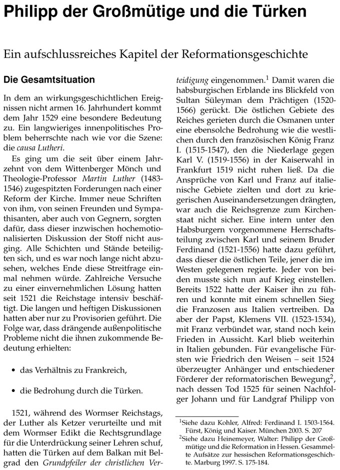 2Siehe dazu Heinemeyer, Walter: Philipp der Großmütige und die Reformation in Hessen. Gesammelte Aufsätze zur hessischen Reformationsgeschichte. Marburg 1997. S. 175-184.
