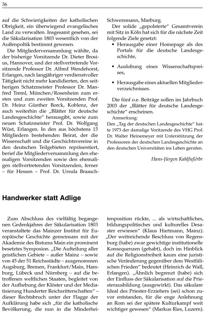 Die fünf o.e. Beiträge sollen im Jahrbuch 2003 der „Blätter für deutsche Landesgeschichte“ erscheinen.