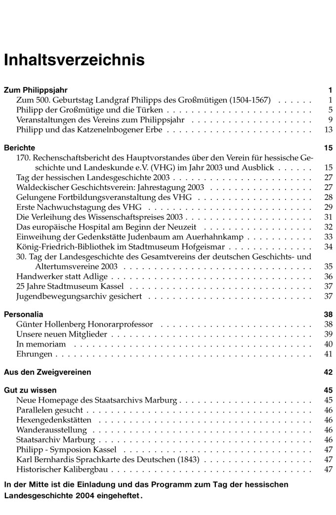 Rechenschaftsbericht des Hauptvorstandes über den Verein für hessische Ge schichte und Landeskunde e.V. (VHG) im Jahr 2003 und Ausblick . . . . . . 15
