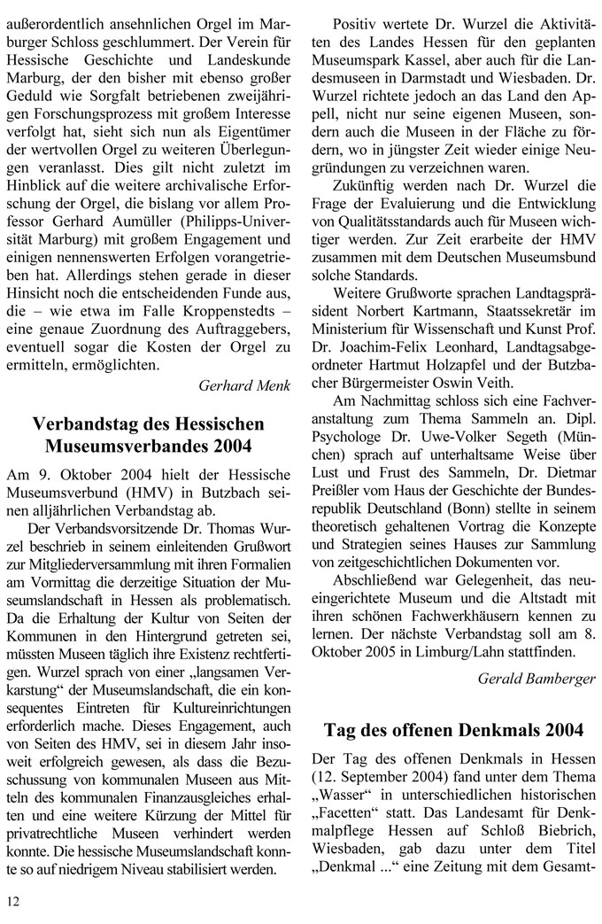Am 9. Oktober 2004 hielt der Hessische Museumsverbund (HMV) in Butzbach seinen alljährlichen Verbandstag ab.