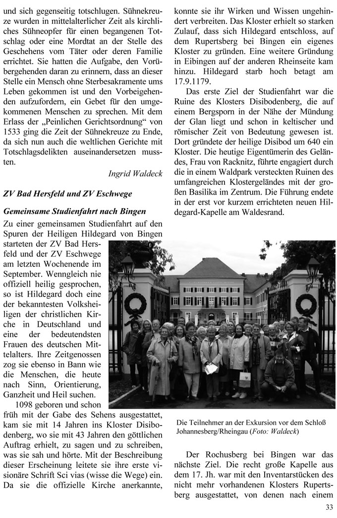 feld und der ZV Eschwege am letzten Wochenende im September. Wenngleich nie offiziell heilig gesprochen, so ist Hildegard doch eine der bekanntesten Volksheiligen der christlichen Kirche in Deutschland und eine der bedeutendsten Frauen des deutschen Mittelalters. Ihre Zeitgenossen zog sie ebenso in Bann wie die Menschen, die heute nach Sinn, Orientierung, Ganzheit und Heil suchen.