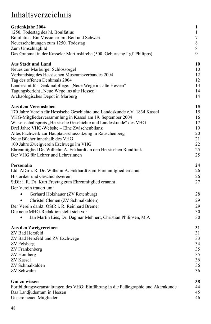 Fortbildungsveranstaltungen des VHG: Einführung in die Paläographie und Aktenkunde 44 Das Landjudentum in Hessen 45 Unsere neuen Mitglieder 46