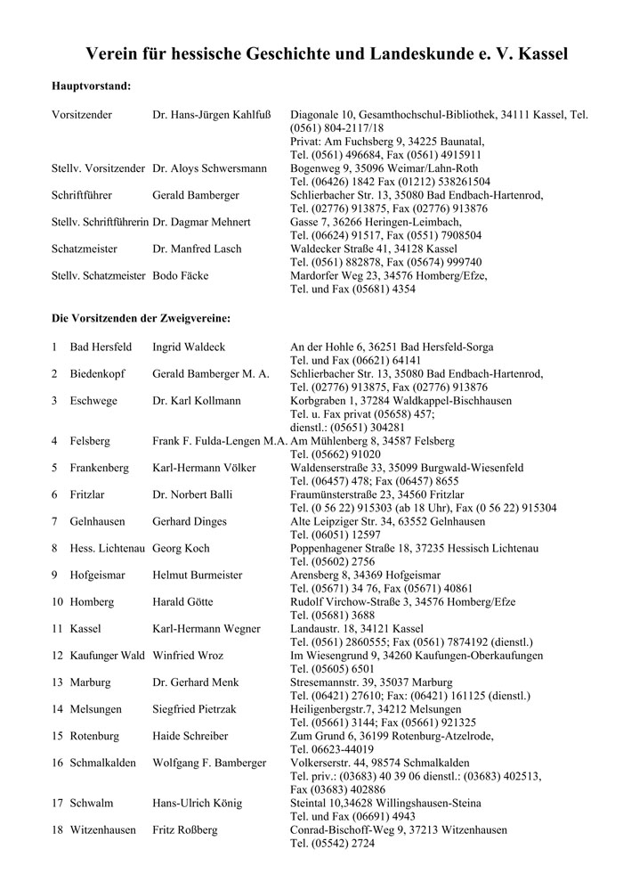 ZV Bad Hersfeld 31 ZV Bad Hersfeld und ZV Eschwege 33 ZV Felsberg 34 ZV Frankenberg 35 ZV Homberg 35 ZV Kassel 36 ZV Schmalkalden 36 ZV Schwalm 36