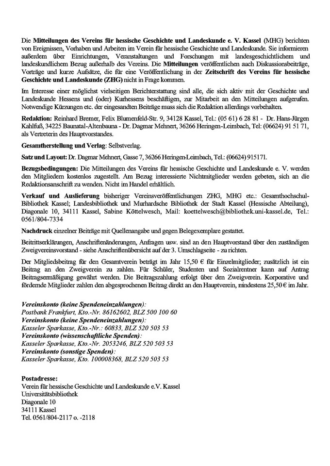 Landeskunde Hessens und (oder) Kurhessens beschäftigen, zur Mitarbeit an den Mitteilungen aufgerufen.
