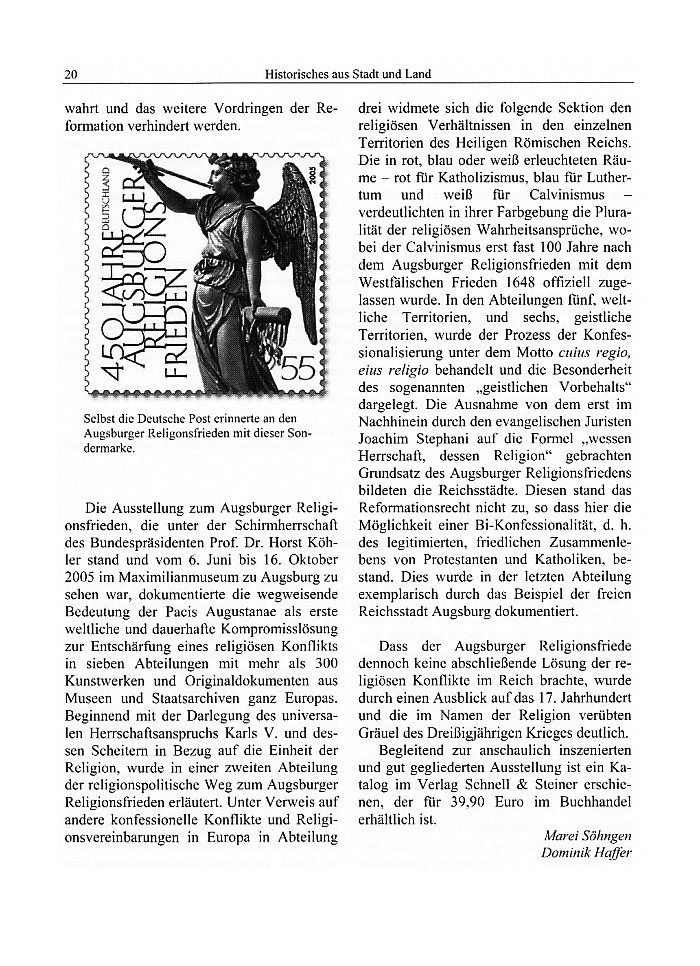 Dass der Augsburger Religionsfriede dennoch keine abschließende Lösung der religiösen Konflikte im Reich brachte, wurde durch einen Ausblick auf das 17. Jahrhundert und die im Namen der Religion verübten Gräuel des Dreißigjährigen Krieges deutlich.