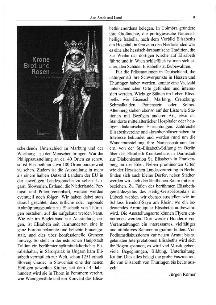 scheidende Unterschied zu Marburg und der Wartburg - zu den Menschen bringen. War die Philippsausstellung an ca. 40 Orten zu sehen, so ist Elisabeth an etwa 100 Orten bundesweit zu sehen. Zudem ist die Ausstellung in mehr als einem halben Dutzend Ländern der EU in der jeweiligen Landessprache zu sehen: Ungarn, Slowenien, Estland, die Niederlande, Portugal und Polen vereinbart, weitere werden eventuell noch folgen. Wir haben dabei stets darauf geachtet, dass örtliche oder regionale Anknüpfungspunkte zu Elisabeth von Thüringen bestehen, auf die aufgebaut werden kann. Wie wir im Begleitband zur Ausstellung zeigen, ist Elisabeth seit Jahrhunderten eine in ganz Europa bekannte und beliebte Frauengestalt, und dies über konfessionelle Grenzen hinweg. So steht in der estnischen Hauptstadt Tallinn ein berühmter spätmittelalterlicher Elisabethaltar, in Sârospatak in Ungarn kam Elisabeth vermutlich zur Welt, schon 1251 erhielt Slovenj Gradec in Slowenien eine der neuen Heiligen geweihte Kirche, seit dem 14. Jahrhundert wird sie in Thürn in Pommern verehrt, wie Wandgemälde und ein Konvent des Elisa